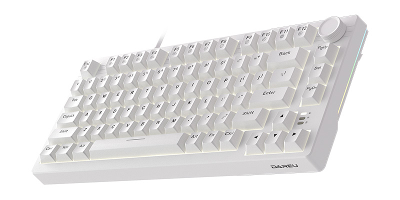 Bàn phím cơ Dareu EK75 White LED Full White trang bị 2 dải đèn RGB bên cạnh cùng với độ sáng và tốc độ chuyển động khác nhau để mang lại cảm giác chơi game đắm chìm.
