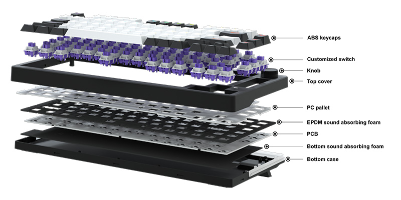 Thiết kế gasket chứa bọt mật độ cao và bảng định vị PC linh hoạt giúp giảm tiếng ồn khi gõ phím và mang lại cảm giác nhấn linh hoạt.