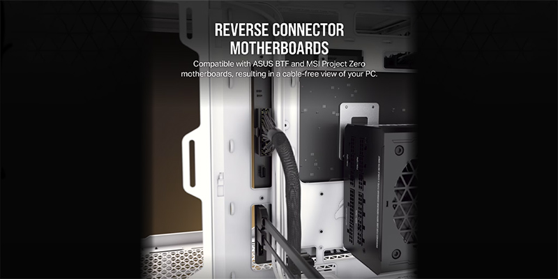 Case máy tính Corsair 2500X TG Black tương thích với các dòng sản phẩm có cổng kết nối đảo ngược, bao gồm ASUS BTF, Project Zero và ICUE Link.