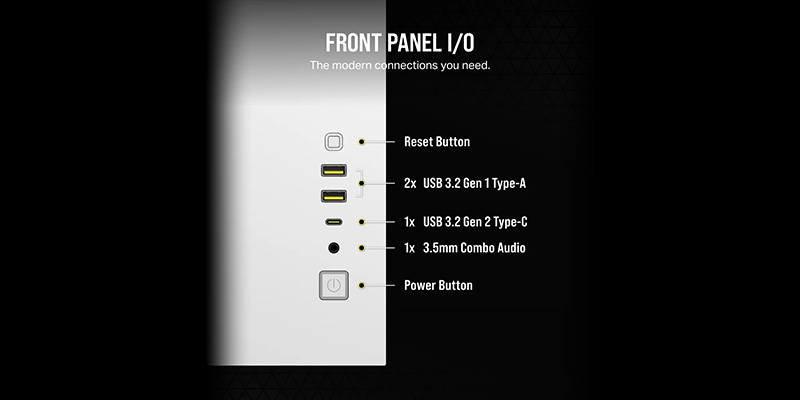 Case máy tính Corsair 2500X TG White trang bị cổng kết nối hiện đại