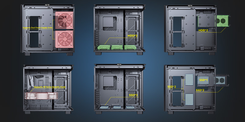 Vỏ máy tính này cũng hỗ trợ lắp 2 PSU cùng lúc cho nhu cầu sử dụng nhiều VGA.