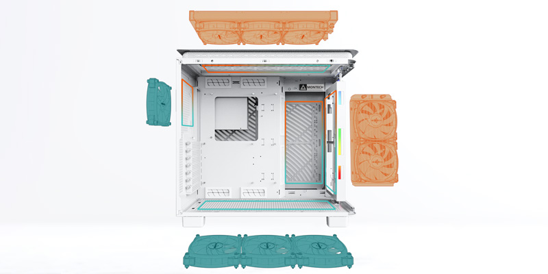 Case máy tính Montech King 95 White tương thích với mọi loại tản nhiệt, bao gồm cả tản nhiệt khí và tản nhiệt nước.