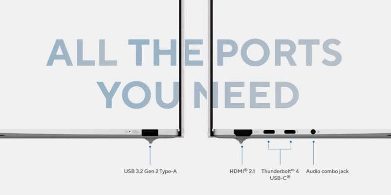 Laptop ASUS Zenbook S 14 OLED UX5406SA-PV140WS được trang bị đầy đủ các cổng kết nối cần thiết, bao gồm Thunderbolt 4, USB-A, HDMI và khe đọc thẻ nhớ microSD, giúp bạn dễ dàng kết nối với các thiết bị ngoại vi.