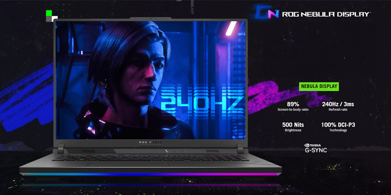 Màn hình18 inch 2.5K (2560 x 1600, WQXGA), 16:10 IPS, 240Hz, 3ms, 100% DCI-P3, Anti glare, G-Sync, đạt chuẩn Pantone, ROG Nebula Display