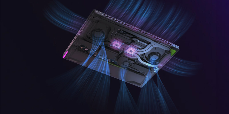 Hệ thống tản nhiệt ROG Strix G18với 7 ống dẫn nhiệt mang đến luồng không khí yên tĩnh cùng thiết kế rộng rãi giúp giữ cho CPU vận hành ở nhiệt độ tối ưu và cho hiệu năng mạnh mẽ và bền bỉ hơn.