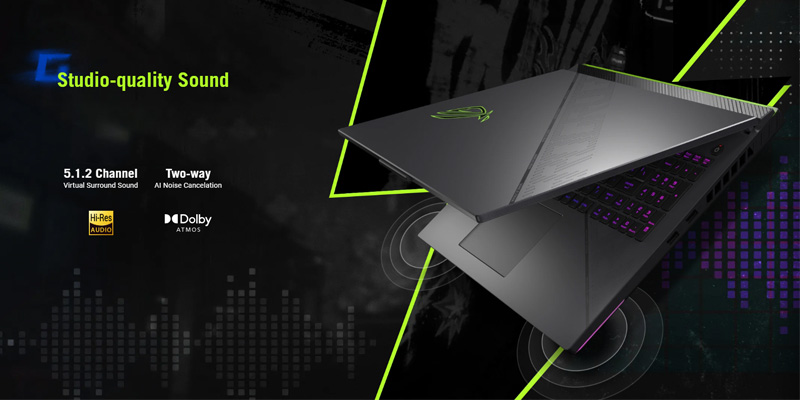 Hệ thống loa kép trênLaptop Gaming Asus ROG Strix G18hỗ trợ Dolby Atmos giúp tạo ra âm thanh chân thực nhất khi chơi game và giải trí. Âm thanh độ phân giải cao giúp bạn tận hưởng âm nhạc với chất lượng tương đương bản thu gốc. Công nghệ khử tiếng ồn AI hai chiều xử lý cả âm thanh đầu vào và đầu ra để lọc mọi tiếng ồn môi trường, giúp cuộc gọi, trò chuyện và phát trực tiếp được thông suốt mà không gây xao nhãng.