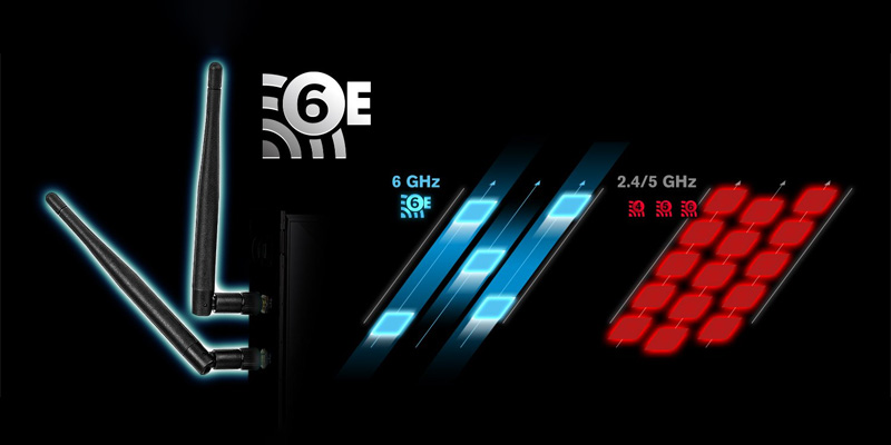Wi-Fi 6E mang lại hiệu suất kết nối không dây siêu tốc và cho phép người dùng chơi game trực tuyến đắm chìm, liền mạch. Những giải pháp này mang lại mức độ kiểm soát cao hơn cùng với sức mạnh cần thiết để tận dụng tối đa các ứng dụng trực tuyến đòi hỏi khắt khe ngày nay.