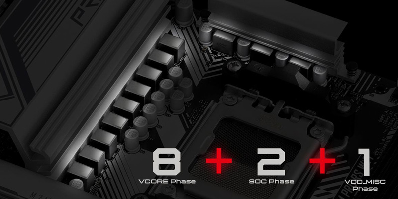 Mainboard PC ASRock B650M Pro RS Wifithiết kế giải pháp cung cấp dòng điện một cách thông minh với các thành phần chắc chắn và khả năng cung cấp năng lượng hoàn toàn mượt mà cho CPU, mang lại hiệu năng nâng cao cho game thủ.