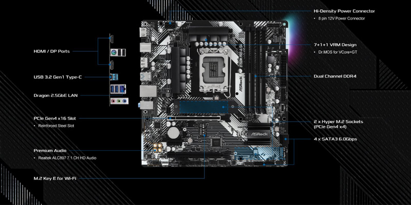 Mainboard PC ASRock B760M Pro-A/D4được trang bị đẩy đủ các cổng kết nối để bạn dễ dàng lắp đặt.
