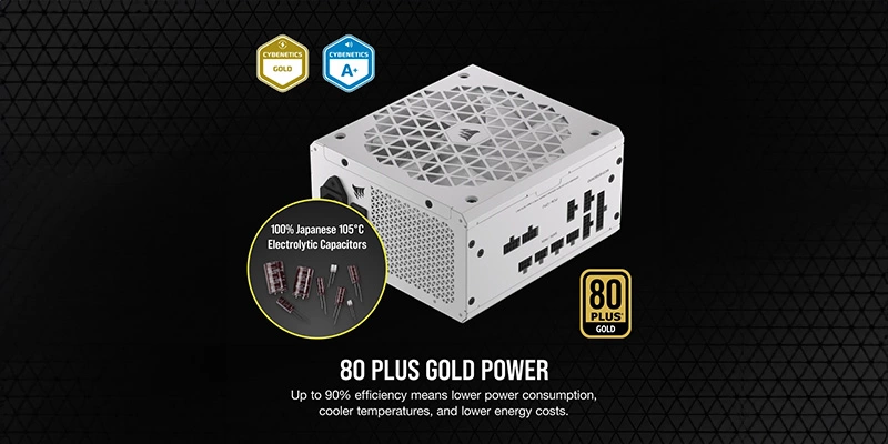 Nguồn Corsair RM750x Shift White 750W đạt chứng nhận 80 Plus Gold, đảm bảo hiệu suất chuyển đổi năng lượng lên đến 90%. Giúp tiết kiệm điện năng, giảm thiểu nhiệt lượng tỏa ra và tăng tuổi thọ cho hệ thống.