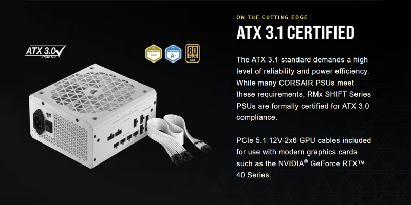Nguồn máy tính Corsair RM750x Shift White 750W 80 Plus Gold đạt chuẩn ATX 3.1 mới nhất