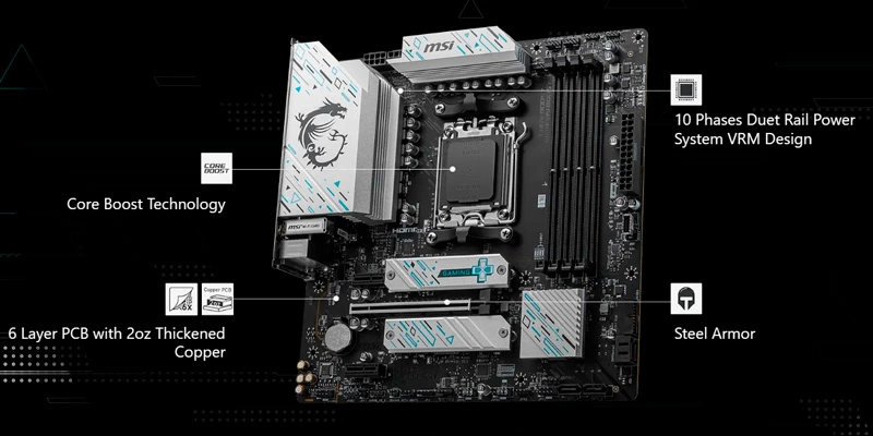 PC Gaming MSI R57-4070 Cấu hình CPU mạnh mẽ CPU AMD Ryzen 5 7600nâng cao hiệu suất xử lý với 6 nhân 12 luồng giúp tăng hiệu năng xử lý đa nguồn, giải phóng sức mạnh để tối đa hóa hiệu suất của máy tính. | ![]() |