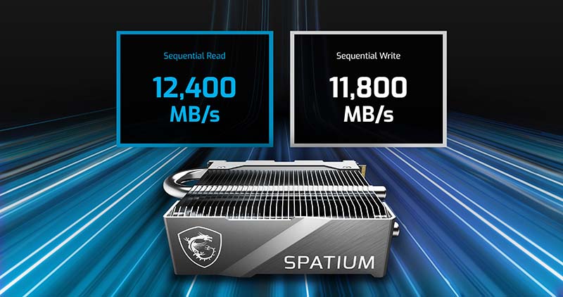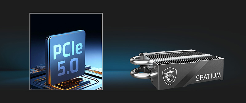 Ổ cứng SSD MSI SPATIUM M570 PRO FROZR 2TB dùng giao diện PCIe Gen5 x4 với hiệu suất vượt trội sử dụng để truyền và nhận dữ liệu đồng thời, dẫn đến hiệu suất hấp dẫn lên đến 12400MB/s đọc và 11800MB/s ghi. (*tùy vào dung lượng khác nhau sẽ cho tốc độ khác nhau)