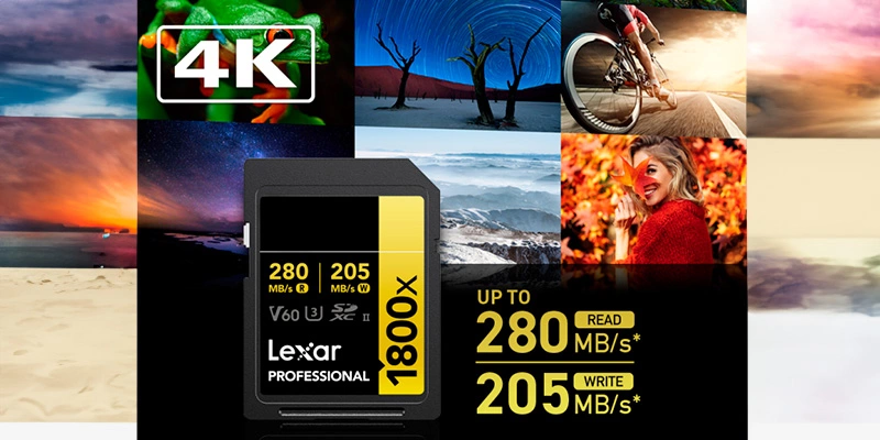 Thẻ nhớ Lexar 1800x tương thích với nhiều thiết bị, bao gồm máy ảnh DSLR, máy quay phim, máy ảnh mirrorless và các thiết bị khác hỗ trợ chuẩn UHS-II.